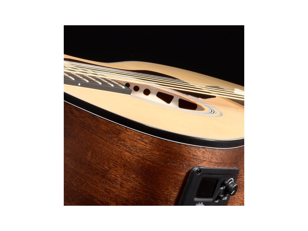 Model D550E z řady Natura 500 je elegantní akusticko-elektrická kytara typu Dreadnought, která kombinuje masivní smrkovou rezonanční desku s lehkým žebrováním typu Low-Mass Scalloped-X. Výsledkem je plný, otevřený zvuk s jasnou projekcí a bohatými harmonickými tóny, ideální jak pro prstovou techniku, tak pro doprovod.