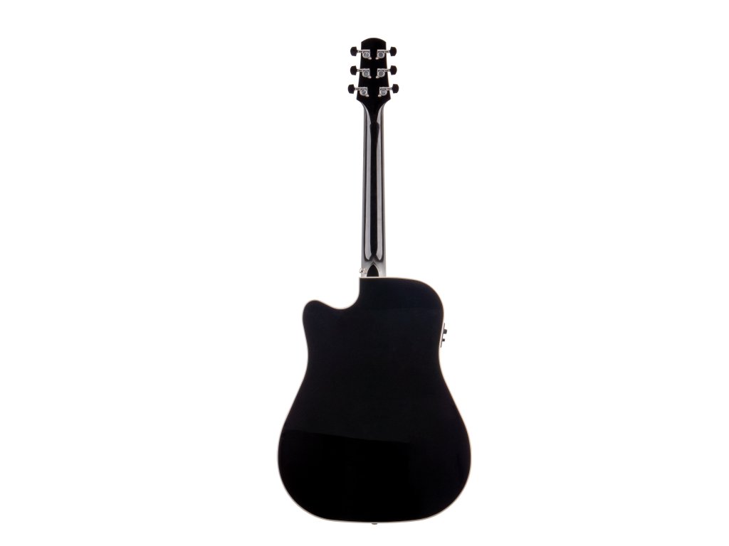 Tento elegantní model ze série Natura 600 v lesklém černém provedení zaujme nejen vzhledem, ale i špičkovým řemeslným zpracováním. V kontrastu s tmavým tělem vyniká bílé ABS lemování, černé ladicí mechaniky a rozeta ze dřeva javoru a mahagonu, které dodávají kytaře moderní, ale vkusný vzhled.