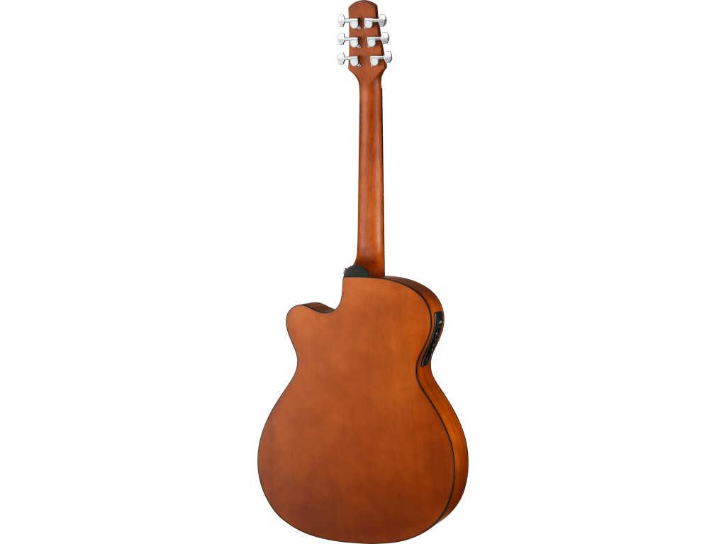 Vrchní deska je vyrobena ze smrku, zatímco zadní deska a luby jsou z lípy, což nástroji dodává vyvážený a příjemný zvuk. Krk z mahagonu je vybaven dvoucestnou výztuhou a je zpevněn skleněnými vlákny – taková stabilita je v této cenové kategorii naprosto ojedinělá.
