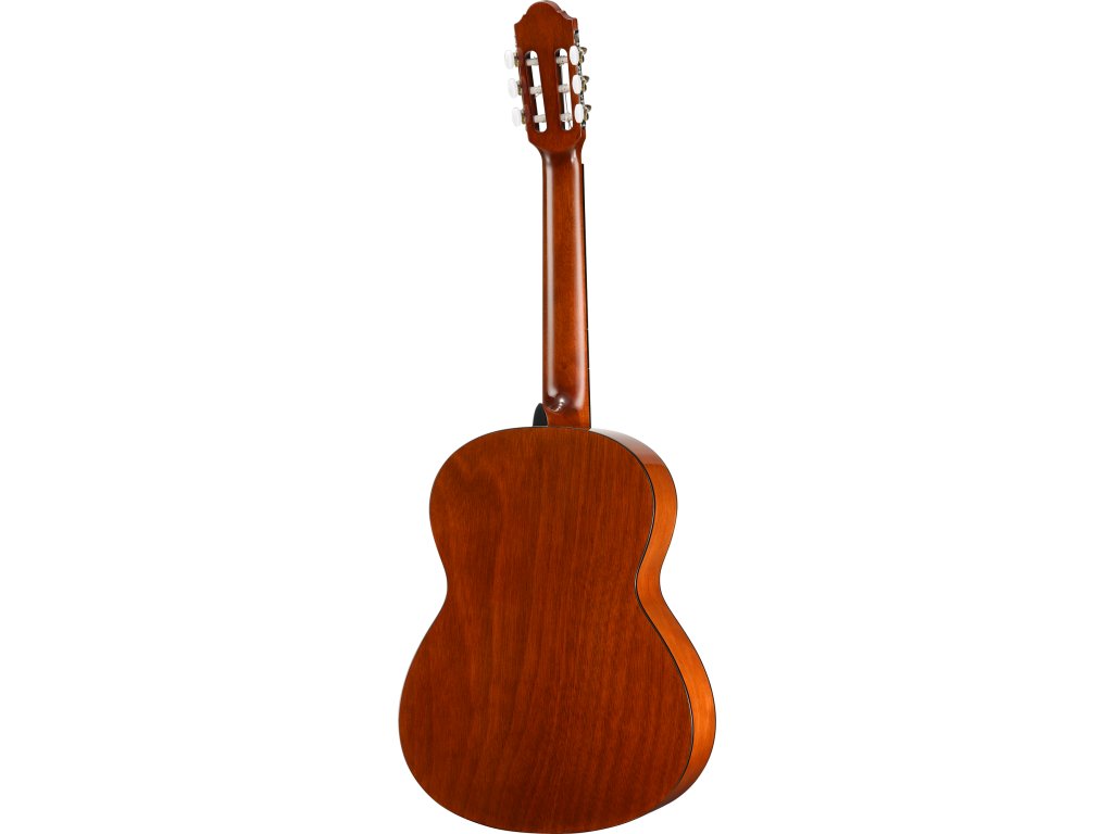 Krk je zesílen skelnými vlákny a vybaven dvoucestnou výztuhou, což výrazně prodlužuje jeho životnost a zajišťuje pohodlné hraní i po letech. Díky plné velikosti a tradičnímu vějířovému žebrování nabízí nástroj teplý a vyvážený tón.