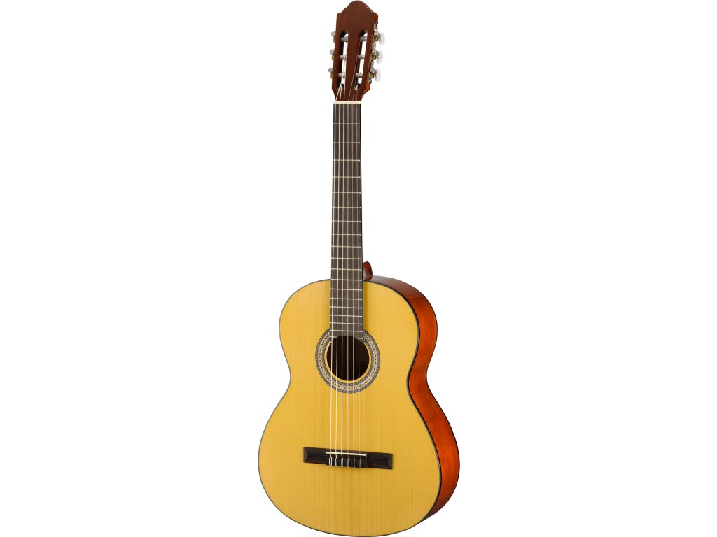 Model STANDARD N450 je klasická kytara s nylonovými strunami a masivní smrkovou horní deskou. Tělo z mahagonu spolu s tradiční vějířovou výztuhou zajišťuje elegantní, bohatý a intimní zvuk, jaký očekáváte od kvalitní kytary s masivní deskou. Díky pečlivě vyzrálému dřevu a správné péči vám tato kytara vydrží celý život.