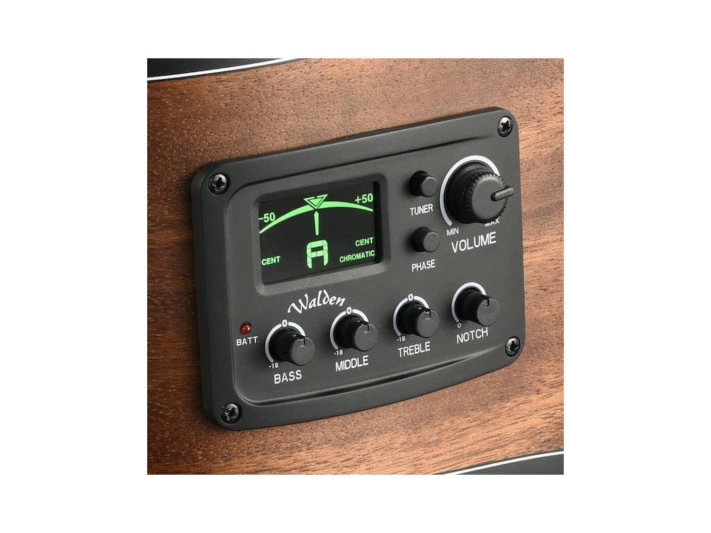 Povrchová úprava s otevřenými póry v saténovém lesku zajišťuje přirozenou odezvu dřeva a zároveň ekologicky šetrnou ochranu. O spolehlivý výkon na pódiu se stará elektronika Walden MG-20 s vestavěnou ladičkou, která poskytuje čistý a vyvážený výstup. Osazena je kvalitními strunami D’Addario EXP46, které jsou potažené pro delší životnost a stabilní zvuk.