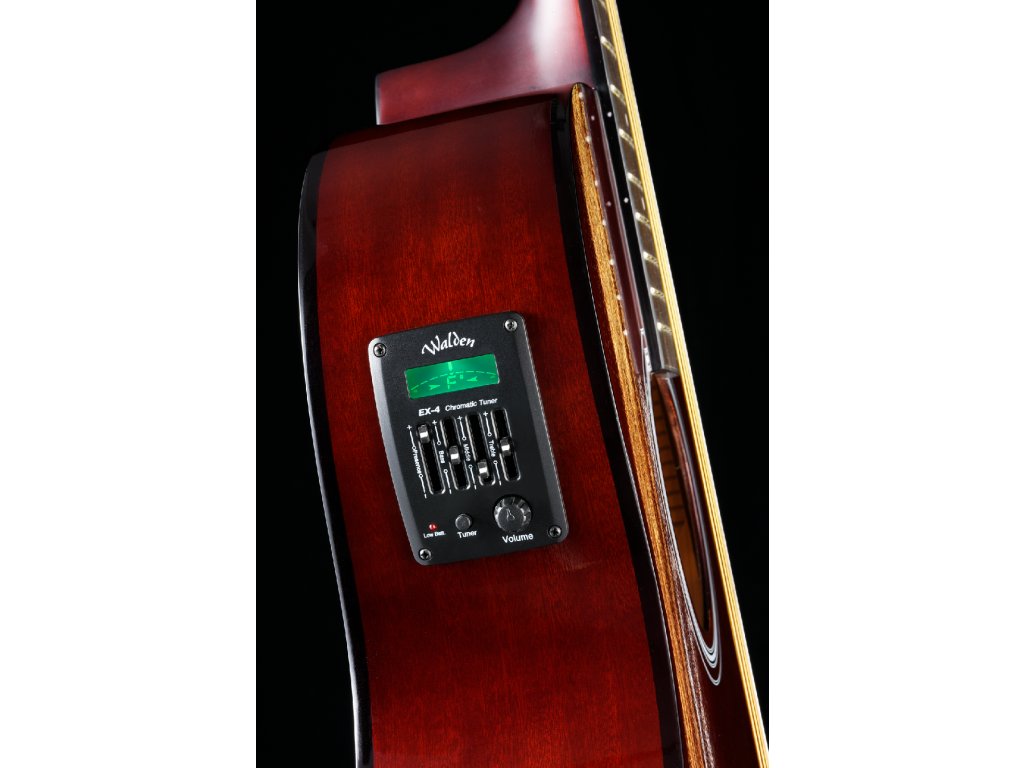 Nástroj je vybaven spolehlivou elektronikou WALDEN EX-4 s vestavěnou ladičkou a třípásmovým ekvalizérem. Krk z mahagonu je zpevněn dvěma grafitovými výztuhami a nastavitelnou výztuží, což zajišťuje dlouhodobou stabilitu i odolnost vůči změnám klimatu. Lesklý lak dodává nástroji elegantní vzhled a zároveň ho chrání. Součástí balení je i kvalitní gigbag WALDEN.